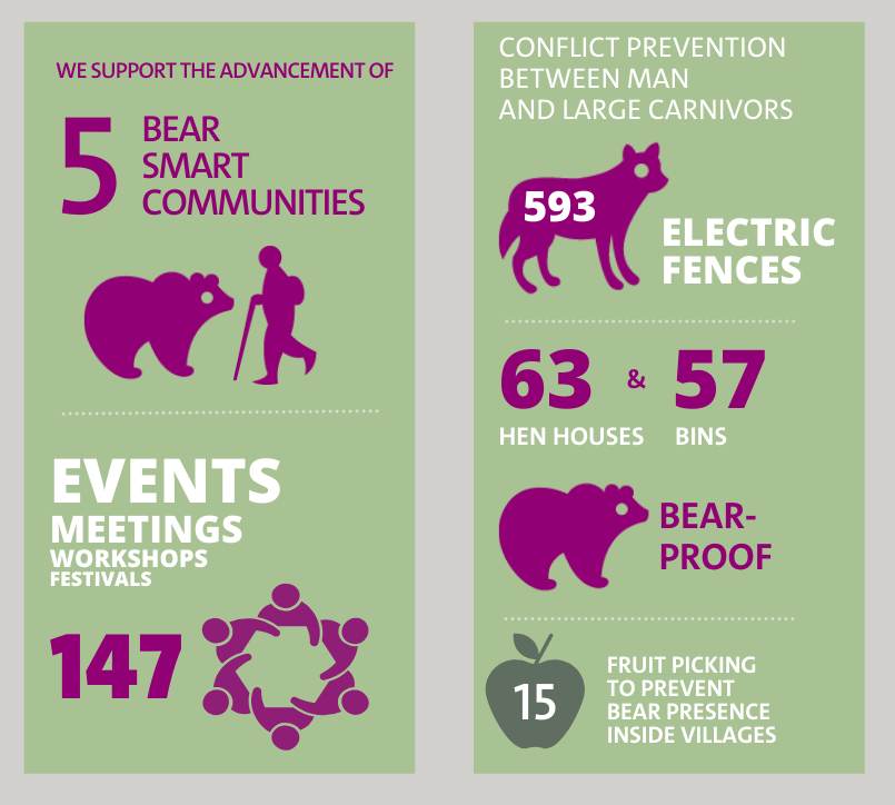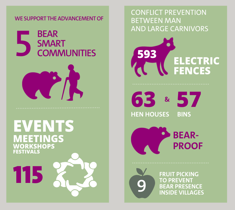 Over the following years, our efforts expanded, creating two more communities in Valle Roveto and Alto Molise. Thanks to the LIFE Bear Smart Corridors program, this initiative has now grown to 16 active communities.