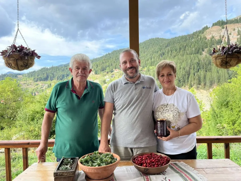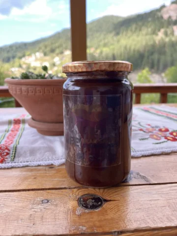 È qui che siamo stati accolti nella casa della signora Kalypsó Palioú e di suo marito Giorgos Paliós. Insieme custodiscono la memoria di un’altra epoca, unita a una determinazione instancabile nel mantenere vivo il loro villaggio — la sua gente, le sue storie, i suoi sapori, il suo patrimonio immateriale. Dal loro balcone affacciato sulla foresta, abbiamo parlato della vita in montagna, del sapere che rischia di perdersi, dell’orso bruno che si avvicina sempre più ai paesi, e dei modi in cui una comunità cerca oggi di reinventarsi.