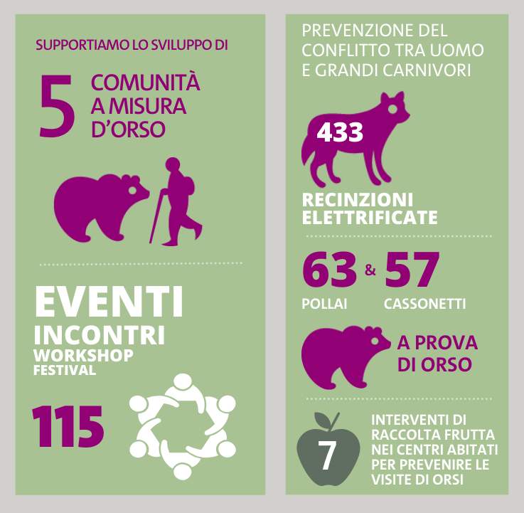 Nel 2015, insieme a Salviamo l’Orso, siamo stati pionieri nell’introduzione di questo approccio in Italia, ispirandoci al modello nordamericano delle Bear Smart Communities. Lo abbiamo adattato al contesto locale dando vita alla prima Comunità a Misura d’Orso a Pettorano sul Gizio. Negli anni successivi, il nostro impegno si è ampliato con la creazione di altre due comunità, nella Valle Roveto e nell’Alto Molise, fino a raggiungere le 16 realtà attuali, grazie al programma Life Bear Smart Corridors.