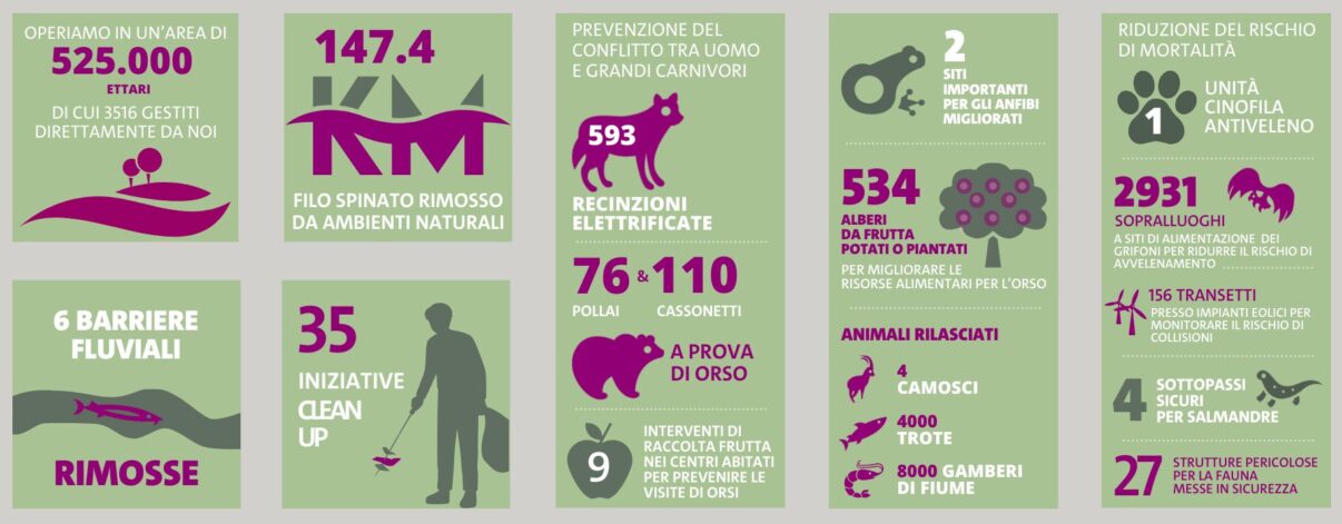 I nostri volontari contribuiscono al monitoraggio della fauna selvatica, alla rimozione del filo spinato abbandonato in ambienti naturali, ad iniziative di pulizia di aree naturali, alla realizzazione di interventi di prevenzione per mitigare i conflitti uomo-fauna e a molte altre attività.