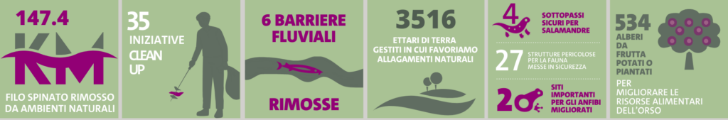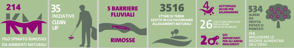 A questo sforzo quotidiano e continuativo si aggiungono tante altre piccole-grandi azioni di miglioramento degli habitat critici per molte specie animali che seguiamo nel nostro lavoro.